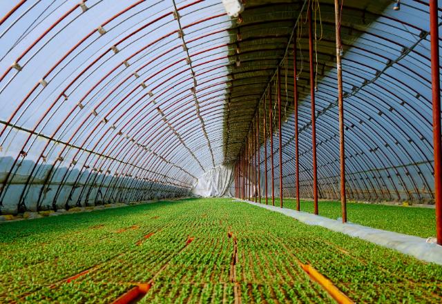 韓寶林的生產(chǎn)基地在張家口沽源縣,2月底開始培育的第一批生菜幼苗,現(xiàn)在已經(jīng)移栽到大棚里。5月初,這批圓生菜就能成熟上市,進(jìn)入首衡河北新發(fā)地市場(chǎng)銷售,部分將出口韓國。